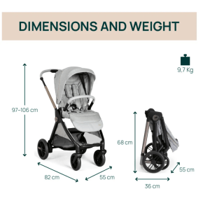 - Stroller Assembled Dimensions: 55 cm (L) x 82 cm (W) x 97 – 106 cm (H)