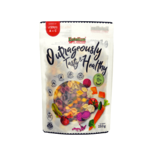 Our Mixed Vegetable Pasta is made from a combination of 10 different type of fresh vegetables & durum wheat semolina flour. The vegetables that we used are spinach, carrot, pumpkin, broccoli, beetroot, purple sweet potato, tomato, red cabbage, purple carrot and cauliflower.